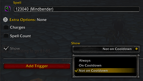 Suppose I have other spells, like “Mindbender”, that I want to be reminded of, whenever they’re NOT on cooldown.
