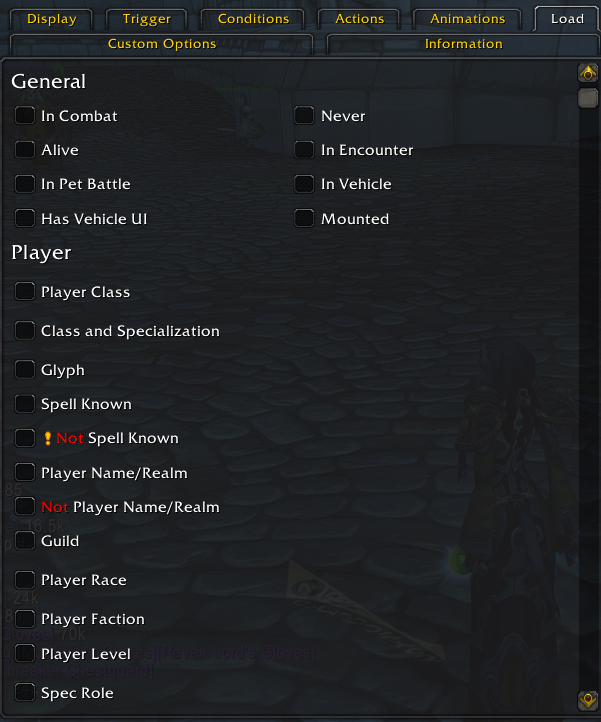 In other words, try to use the “Load” tab, to keep WeakAuras NOT loaded, as much as possible, to keep your game running well, as much as possible!