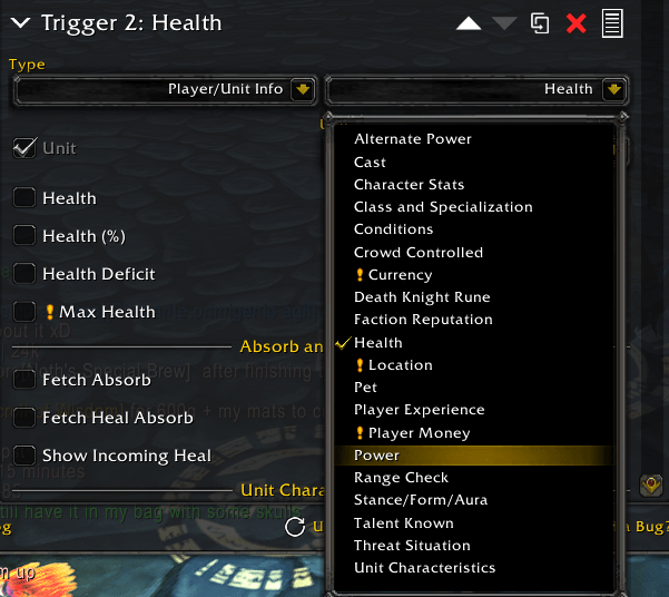 Now it says “Trigger 2: Health” but that’s wrong, I actually want it to look at my Mana.