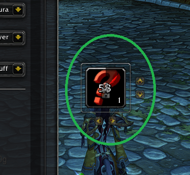 At this point, it’s actually already a Question Mark icon on my real screen! It’s UNDERNEATH my WeakAuras addon window!