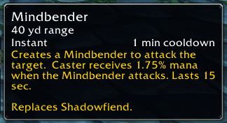 Look at this priest spell, “Mindbender“, in Mists of Pandaria Classic. Here’s the tooltip: